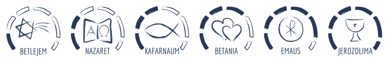 Nazwy grup nawiązują do miejsc opisanych w Ewangelii i obejmują kilka (ponumerowanych) roczników: